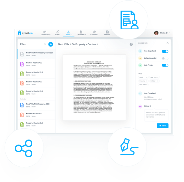 ¿Necesitas enviar contratos a tus huéspedes? Sympl se integra completamente con Signature, una aplicación de firma electrónica y gestión documental. Envía automáticamente contratos y acuerdos de alquiler a tus huéspedes, recopila comentarios mediante formularios y cuestionarios personalizados, y personaliza cada documento para cada huésped. Crea una experiencia de flujo de trabajo excepcional para tus huéspedes con Signature y Sympl. Descubre más sobre Signature .